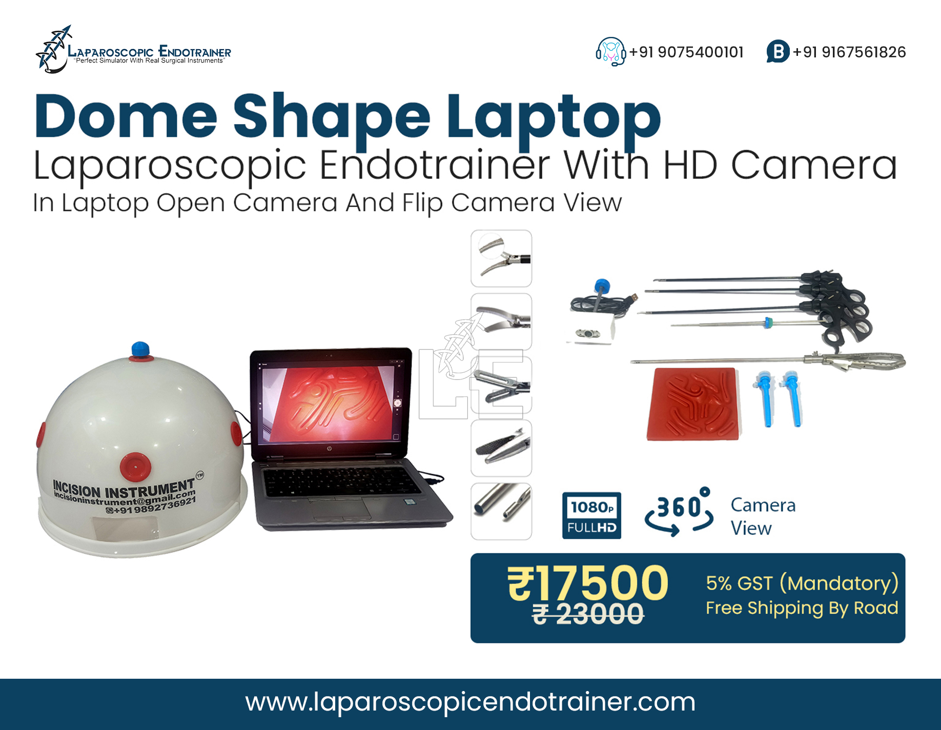 Dome Shape Portable Laparoscopic Endo Trainer Kit, engineered for laptop-based laparoscopic training with professional-grade performance. This laparoscopic box trainer is ideal for medical students, MS/DNB residents, and practicing surgeons seeking realistic simulation and precision control.