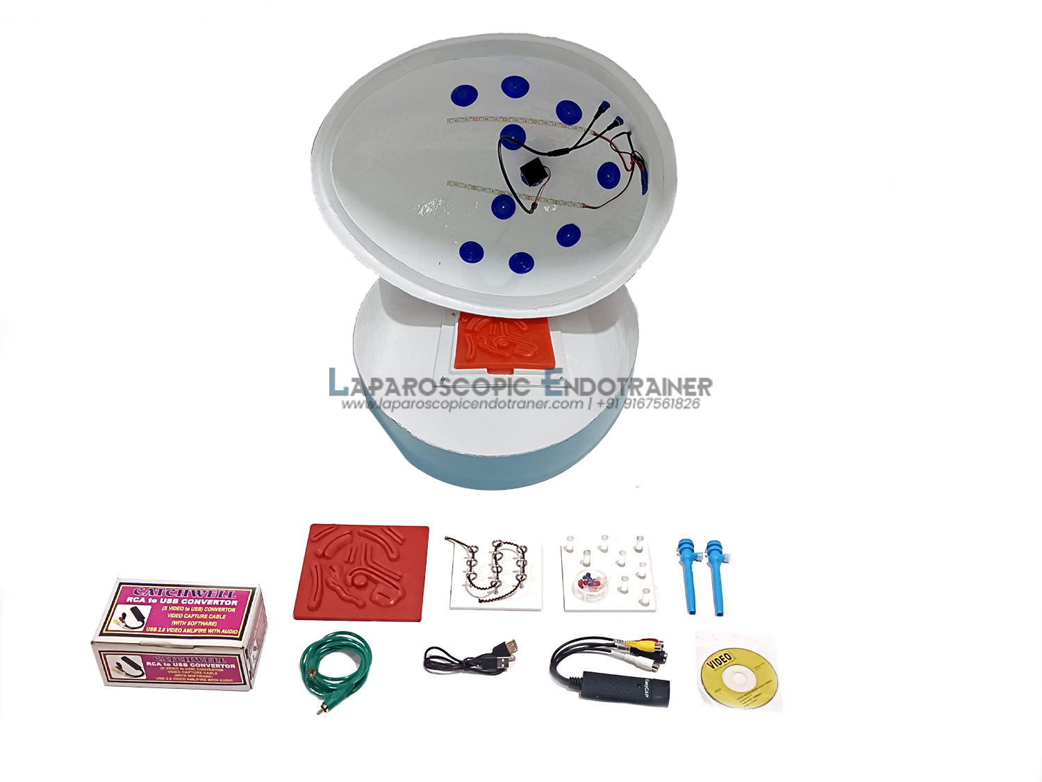 Equipped with a 360-degree 1080px fix camera, Port Cannula, high quality skin-type silicone pad for suturing, and acrylic sheet for thread passing & ball clamping, this laparoscopic virtual video endo trainer provides egg, oval, and anda shape endotrainer options for effective laparoscopic training endotrainer sessions. Ideal as a laparoscopic trainer with real surgical instruments, widely used in Mumbai, Delhi, Bangalore, Pune, and Chennai.