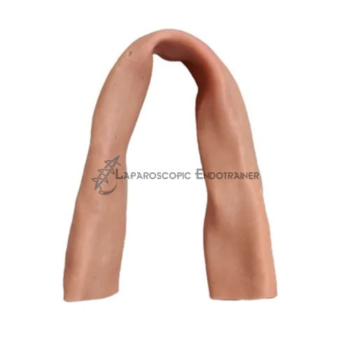 The Human Bowels for Anastomosis (Small – 2 Layers) is a realistic laparoscopic training model designed for practicing small bowel anastomosis and suturing techniques. It features **two distinctly colored layers—Serosa and Mucosa—**that accurately simulate real bowel tissue behavior during suturing and knot tying. Both layers are fortified and firmly attached, ensuring stability and durability through repeated training sessions. With a 10-inch length and 1.5–2.0 cm diameter, this model closely represents human small bowel dimensions. Compatible with all laparoscopic endo trainers, this CE-certified model is manufactured in Mumbai and trusted by surgeons and medical training institutes across India.